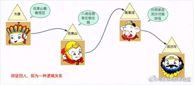 就如西天取经的唐僧、悟空、八戒、沙和尚。他们本无联系,但结拜为师徒兄弟,你问悟空他的师父它会立马想到唐僧,因为五指山下的约定。
