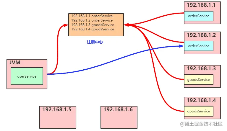 目前,orderService只有一个服务,三台机器,也许可以在userServuce中配置三个ip,然后自行编写路由规则即可。但是随着业务的复杂,机器的变化,也许,我们起初无法得知机器的ip信息。