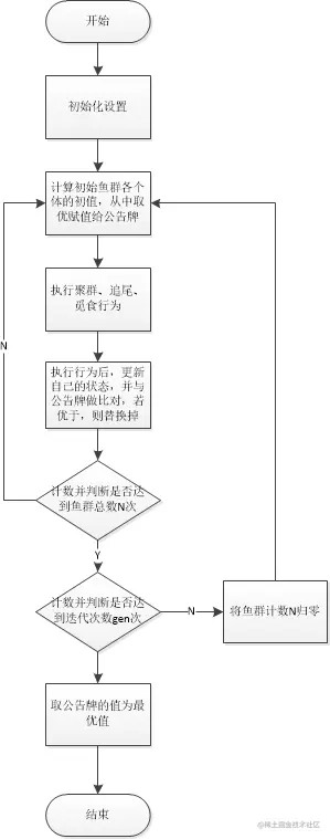 - 计算初始鱼群各个体的适应值,取最优人工鱼状态及其值赋予给公告牌;