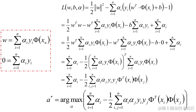 为了优化上面公式,使用拉格朗日公式和KTT条件优化公式转化为: