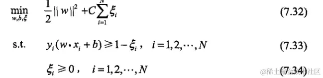 但在正常情况下可能存在一些特异点,将这些特异点去掉后,剩下的大部分点都能线性可分的,有些点线性不可以分,意味着此点的函数距离不是大于等于1,而是小于1的,为了解决这个问题,我们引进了松弛变量 ε>=0; 这样约束条件就会变成为: