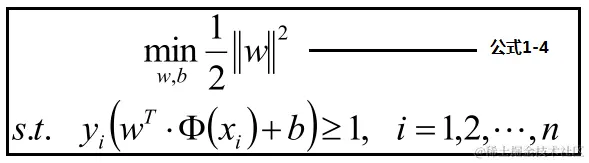 样本点的函数距离大于1,及是:y(w•x+b)>=1,把此条件代入上面优化公式候,可以获取新的优化公式1-3: