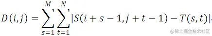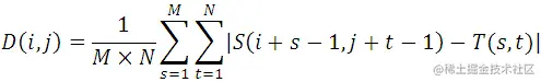 绝对误差和算法(Sum of Absolute Differences,简称SAD算法)。实际上,SAD算法与MAD算法思想几乎是完全一致,只是其相似度测量公式有一点改动(计算的是子图与模板图的L1距离),这里不再赘述。
