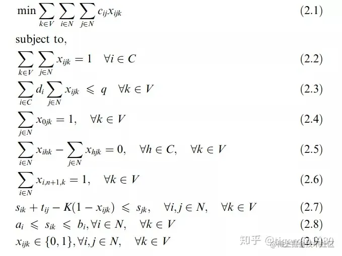 (2.4)(2.5)(2.6)确保了每辆车从depot出发最后回到depot