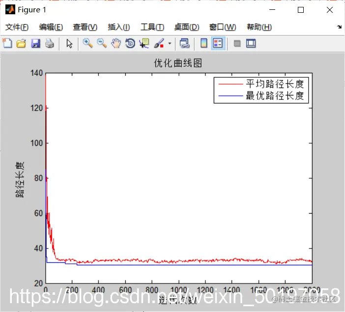 % 画每次迭代平均路径长度和最优路径长度图