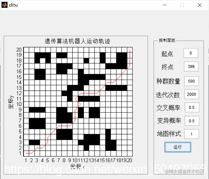 title(['遗传算法机器人运动轨迹']);