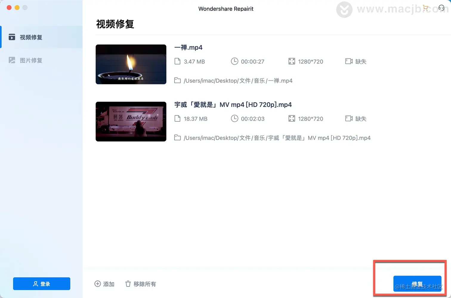 1.添加损坏的视频