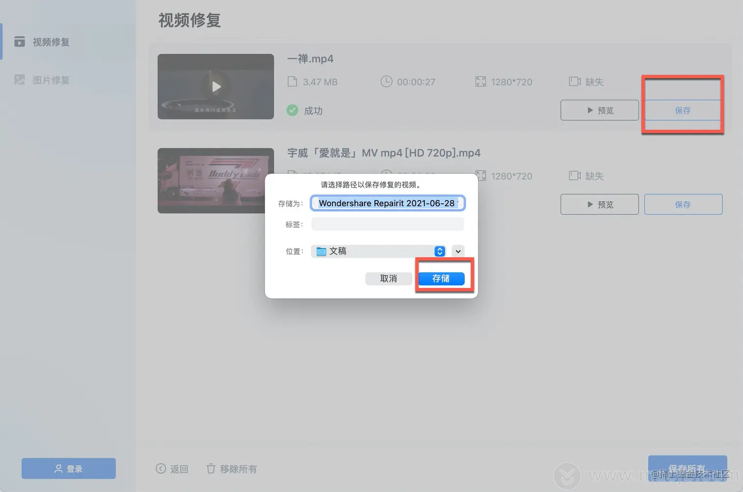 保存修复的视频需要几秒钟。
