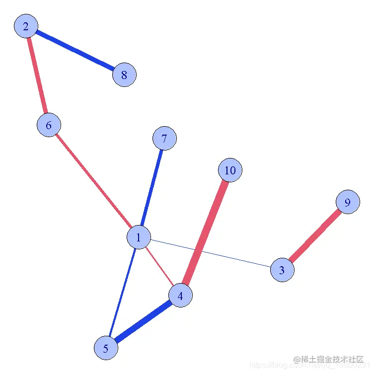 edge.width=seq(1,10), # 边宽度,默认为1