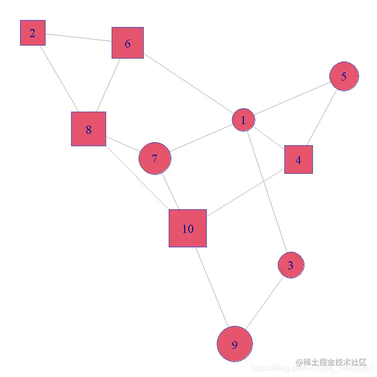vertex.shape=c("circle","square"), # "none", "circle", "square", "rectangle", "crectangle", "vrectangle", "pie", "raster", or "sphere "之一