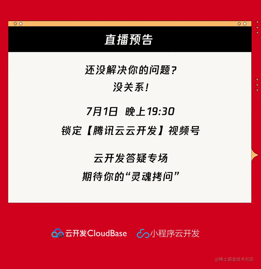 技术交流群、最新资讯关注微信公众号【腾讯云开发CloudBase】