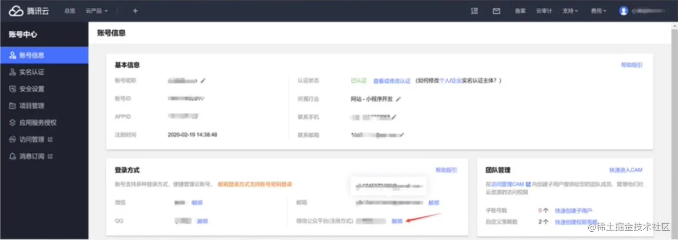 华哥:前往腾讯云控制台-账号中心-账号信息-登录方式进行关联/解绑。