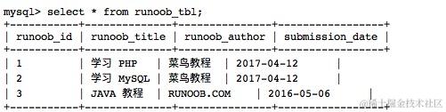 -> ("学习 MySQL", "菜鸟教程", NOW());