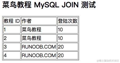 本章节使用的数据库结构及数据下载:runoob-mysql-join-test.sql。