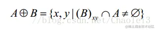 该式子表示用结构B膨胀A,将结构元素B的原点平移到图像像元(x,y)位置。如果B在图像像元(x,y)处与A的交集不为空(也就是B中为1的元素位置上对应A的图像值至少有一个为1),则输出图像对应的像元(x,y)赋值为1,否则赋值为0。
