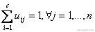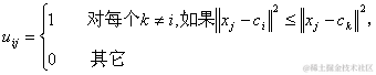 划分过的组一般用一个c×n的二维隶属矩阵U来定义。如果第j个数据点xj属于组i,则U中的元素uij为1;否则,该元素取0。一旦确定聚类中心ci,可导出如下使式(6.2)最小uij: