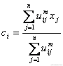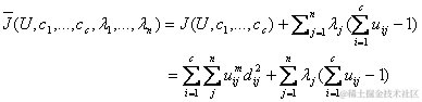 这里uij介于0,1间;ci为模糊组I的聚类中心,dij=||ci-xj||为第I个聚类中心与第j个数据点间的欧几里德距离;且是一个加权指数。