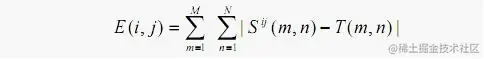 当模板和子图完全一样时,相关系数R(i,j) = 1。在被搜索图S中完成全部搜索后,找出R的最大值Rmax(im,jm),其对应的子图Simjm即位匹配目标。显然,用这种公式做图像匹配计算量大、速度慢。我们可以使用另外一种算法来衡量T和Sij的误差,其公式为: