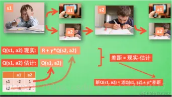 - Q表:Q(s,a),状态s下执行动作a的累积价值