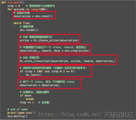 可以看到基本上Q-learning一模一样,只是有一处不一样,就是多了存储记忆,并且批量进行学习。
