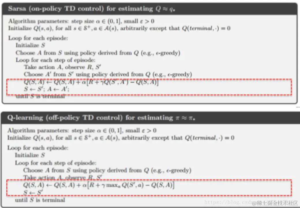 (2)与Q-learning的区别:Sarsa是on-policy的,Q-learning是off-policy的