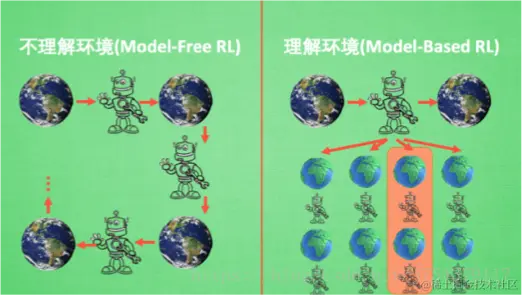 Model-based:那理解了环境也就是学会了用一个模型来代表环境, 所以这种就是 model-based 方法