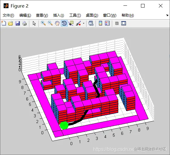 我们假设某人要从 A 点移动到 B 点,但是这两点之间被一堵墙隔开。如图 1 ,绿色是 A ,红色是 B ,中间蓝色是墙。