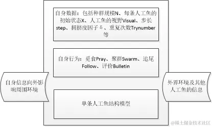 人工鱼是真实鱼抽象化、虚拟化的一个实体,其中封装了自身数据和一系列行为,可以接受环境的刺激信息,做出相应的活动。其所在的环境由问题的解空间和其他人工鱼的状态,它在下一时刻的行为取决于自身的状态和环境的状态,并且它还通过自身的活动来影响环境,进而影响其他人工鱼的活动。