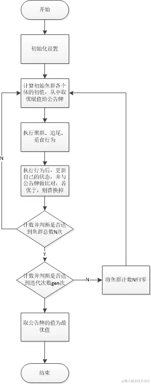 - 计算初始鱼群各个体的适应值,取最优人工鱼状态及其值赋予给公告牌;