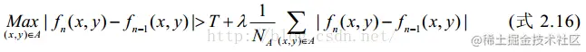 在帧间差分法中,阈值 T 的选择非常重要。如果阈值T选取的值太小,则无法抑制差分图像中的噪声;如果阈值T选取的值太大,又有可能掩盖差分图像中目标的部分信息;而且固定的阈值T无法适应场景中光线变化等情况。为此,有人提出了在判决条件中加入对整体光照敏感的添加项的方法,将判决条件修改为: