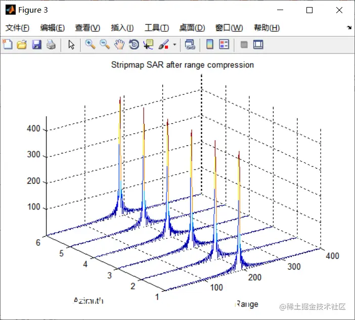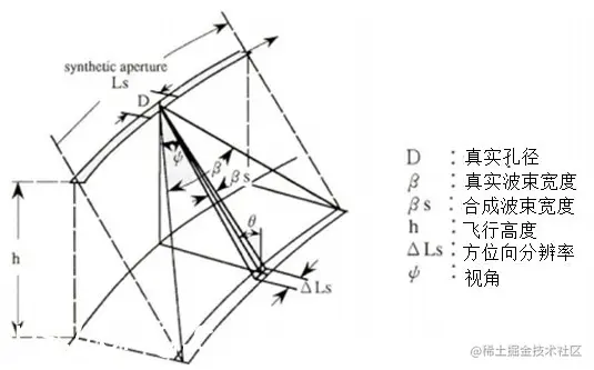 从这个公式中可以看到,SAR系统使用小尺寸的天线也能得到高方位向分辨率,而且与斜距离无关(就是与遥感平台高度无关)。