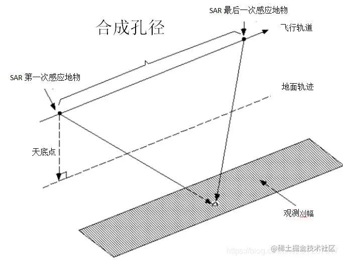 用一个小天线作为单个辐射单元,将此单元沿一直线不断移动,在不同位置上接收同一地物的回波信号并进行相关解调压缩处理。一个小天线通过“运动”方式就合成一个等效“大天线”,这样可以得到较高的方位向分辨率,同时方位向分辨率与距离无关,这样SAR就可以安装在卫星平台上而可以获取较高分辨率的SAR图像。
