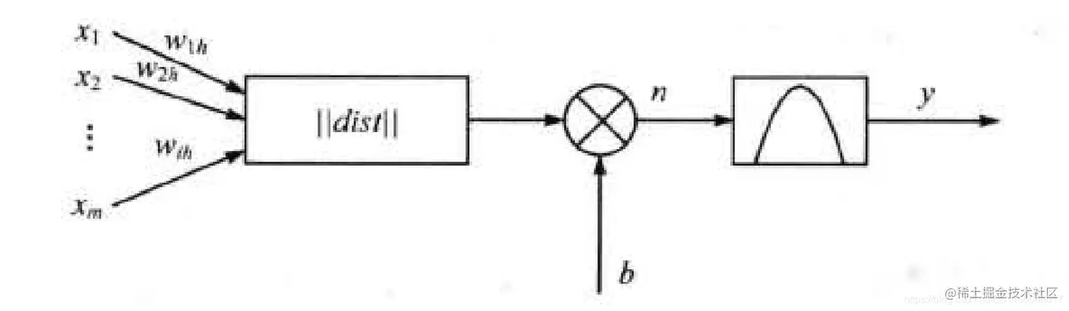 下图是径向基神经元模型