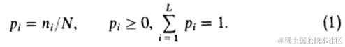 假设一幅图像有L个灰度级[1,2,…,L]。灰度级为i的像素点的个数为ni,那么总的像素点个数就应该为N=n1+n2+…+nL。为了讨论方便,我们使用归一化的灰度级直方图并且视为这幅图像的概率分布: