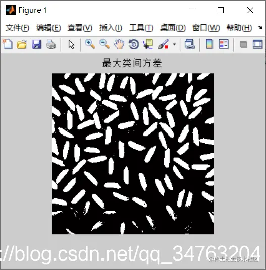 figure;imshow(im2bw(I,th/255),[]); title('最大类间方差');