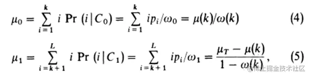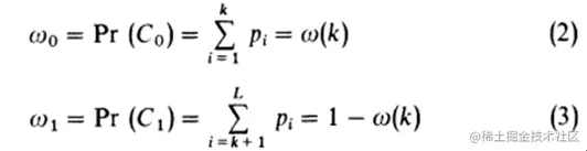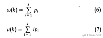 分别为灰度级从1到k的累积出现概率和平均灰度级(一阶累积矩),而