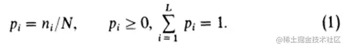 假设一幅图像有L个灰度级[1,2,…,L]。灰度级为i的像素点的个数为ni,那么总的像素点个数就应该为N=n1+n2+…+nL。为了讨论方便,我们使用归一化的灰度级直方图并且视为这幅图像的概率分布: