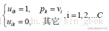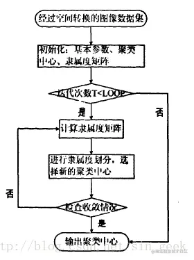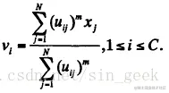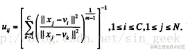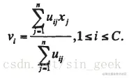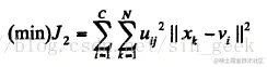 其中U=(uij)cxn为硬C-划分矩阵,V=(v1,v2,,,vc)为C个聚类中心,||·||代码欧式距离。