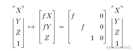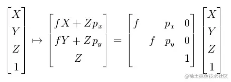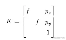 该表达式中的矩阵可以写成diag(f, f, 1)[I|0],其中 diag(f, f, 1) 是对角矩阵,而