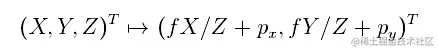其中(px, py)T是主点的坐标,该方程用齐次坐标可以表示成: