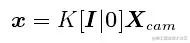 为了方便起见,通常摄像机中心不明显标出,而把世界坐标系到图像坐标系的变换表示成Xcam= RX + t。在该表示方式下摄像机矩阵简化成: