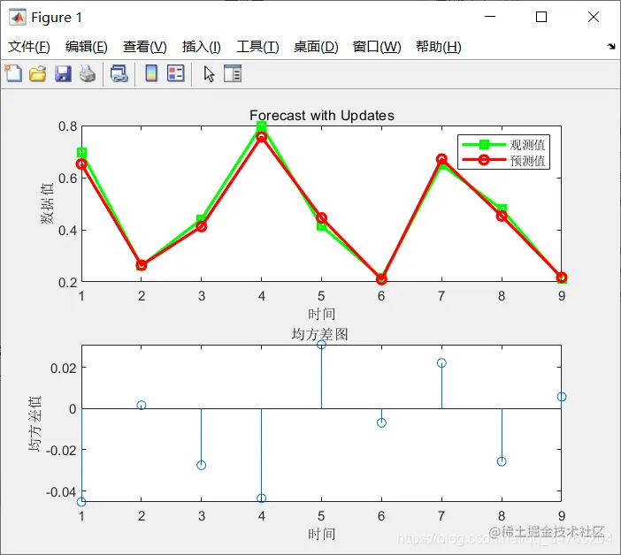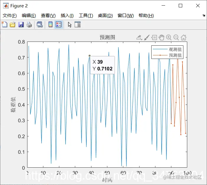 legend('观测值','预测值')