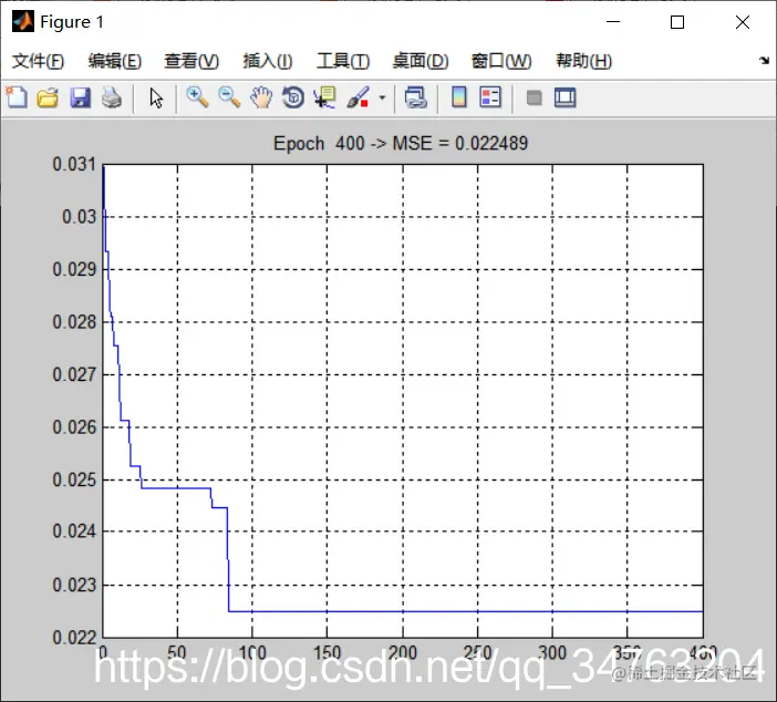 title(['Epoch ' int2str(epoch) ' -> MSE = ' num2str(Et(epoch))]);