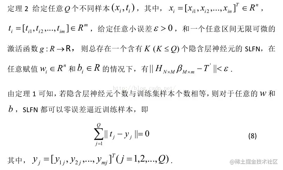定理一是对应的RBF中的 正则化的RN(通用逼近器),即隐层结点个数=输入样本个数,定理二是对应的RBF中的 广义网络GN(模式分类器),隐层节点<输入样本数,个人感觉极限学习机是融合了RBF和BP两种算法的学习思想,输入层与隐层之间是BP,隐层与输出层之间是RBF,当然隐层节点的个数也是惯用了RBF的两种形式,即RN和GN
