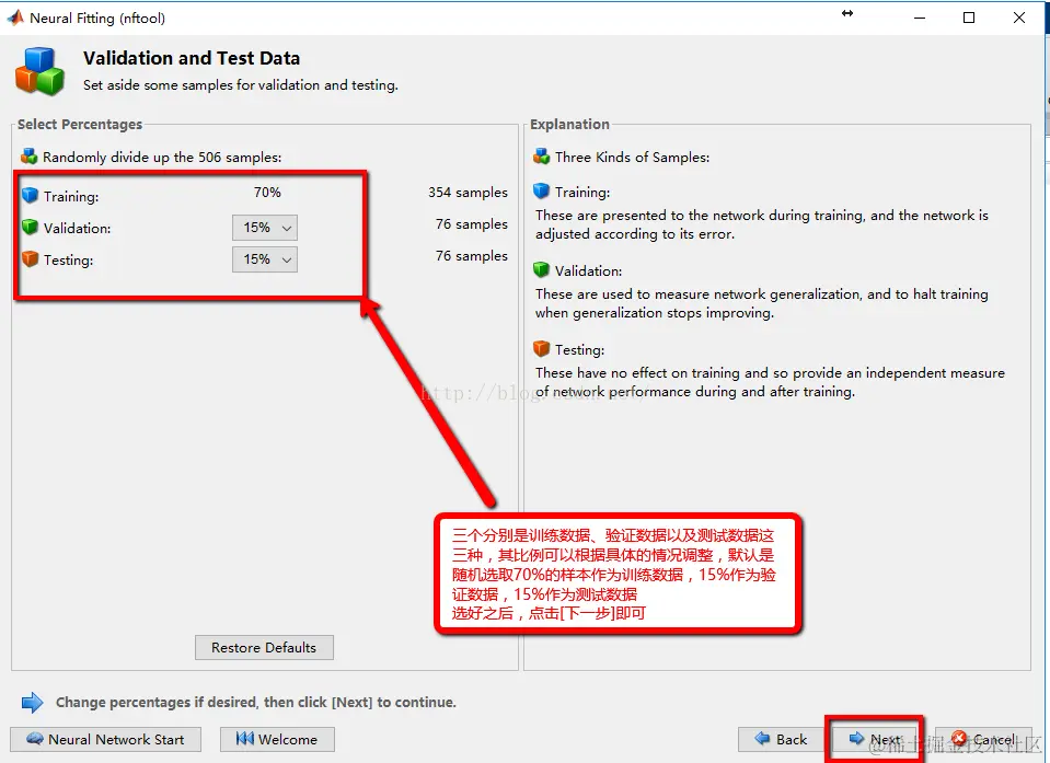 %15%的数据作为测试数据,一般是使用函数dividerand,其一般的使用方法如下: