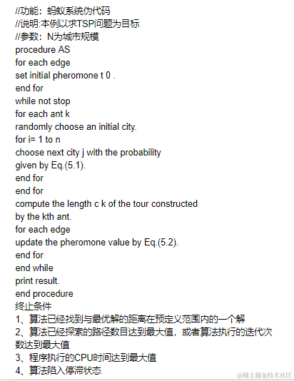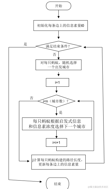 3、信息素和启发式信息:TSP 问题中的信息素表示在访问城市i后直接访问城市j的期望度。启发式信息值一般与城市i和城市j的距离成反比。
