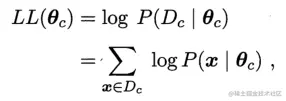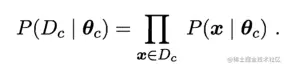 假设Dc表示训练集D上的第c类样本的集合,他们满足条件:样本服从独立分布,则参数θc对于数据集Dc的似然可以表示为: