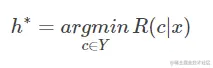 P(ci|x)得到误分为Ci时所产生的期望损失,这个损失也叫做”风险“,当我们制定一个准则h使得对于每一个样本x风险最小时(此时整个样本的总体风险R(h*)( 贝叶斯风险 )也达到最小),称h为贝叶斯最优分类器。期望损失(风险)表达式