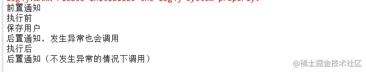 System.out.println("后置通知(不发生异常的情况下调用)");