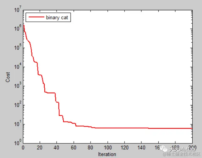 clc;close all;num=2; MaxIt=200; % Maximum Number of IterationsnPop=50; %% Algorithm Parameters BINARY CAT 2013 tb=10;bitt=20;nVar=bitt*tb; BestCost1_cat=zeros(num,MaxIt); CostFunction=@(x,tb,bitt) cost_function(x,tb,bitt); % Cost Functionc2_cat=1;for ittt=1:num for ta=1:1 % Number of Decision Variables alpha=0.3; VarSize=[1 nVar]; % Decision Variables Matrix Size %% PSO Parameters SMP=3;%0.25*nPop; SRD=0.2; CDC=0.2; nb=round(nVar*CDC); MR=0.3; num_seek=round(MR*nPop); num_track=nPop-num_seek; cat=randperm(nPop); w_cat=0.5; vmax_cat=4; %******************************** %% Initialization % Define Empty Structure to Hold Particle Data empty_cat.Position=[]; empty_cat.flag=[]; empty_cat.Velocity=[]; empty_cat.Cost=[]; pop=repmat(empty_cat,nPop,1); vel_cat=rand(nPop,nVar)-0.5; one_vel_cat=rand(nPop,nVar)-0.5; zero_vel_cat=rand(nPop,nVar)-0.5; % Initialize Global Best GlobalBest.Cost=inf; for i=1:nPop % Initialize Velocity pop(i).Position = round(rand(1,nVar)); pop(i).Velocity = rand(1,nVar); % Evaluate Solution pop(i).Cost=CostFunction(pop(i).Position,tb,bitt); y=find(cat==i); if(y<=num_seek) pop(i).flag=1; else pop(i).flag=0; end % Update Global Best if pop(i).Cost<=GlobalBest.Cost GlobalBest=pop(i); end end % Define Array to Hold Best Cost Values BestCost=zeros(MaxIt,1); c1=1; %% PSO Main Loop for it=1:MaxIt oneadd_cat=zeros(nPop,nVar); zeroadd_cat=zeros(nPop,nVar); dd3_cat=c2_cat*rand; %****************************************************** for t_i=1:nPop for g_i=1:nVar if(GlobalBest.Position(g_i)==0) oneadd_cat(t_i,g_i)=oneadd_cat(t_i,g_i)-dd3_cat; zeroadd_cat(t_i,g_i)=zeroadd_cat(t_i,g_i)+dd3_cat; else oneadd_cat(t_i,g_i)=oneadd_cat(t_i,g_i)+dd3_cat; zeroadd_cat(t_i,g_i)=zeroadd_cat(t_i,g_i)-dd3_cat; end end end one_vel_cat=w_cat*one_vel_cat+oneadd_cat; zero_vel_cat=w_cat*zero_vel_cat+zeroadd_cat; for t_i=1:nPop for g_i=1:nVar if(abs(vel_cat(t_i,g_i))>vmax_cat) one_vel_cat(t_i,g_i)=vmax_cat*sign(one_vel_cat(t_i,g_i)); zero_vel_cat(t_i,g_i)=vmax_cat*sign(zero_vel_cat(t_i,g_i)); end end end for t_i=1:nPop for g_i=1:nVar if(pop(t_i).Position(g_i)==1) vel_cat(t_i,g_i)=zero_vel_cat(t_i,g_i); else vel_cat(t_i,g_i)=one_vel_cat(t_i,g_i); end end end veln_cat=logsig(vel_cat); %****************************************************** for i=1:nPop if(pop(i).flag==0) for r2=1:nVar if(rand<veln_cat(i,r2)) pop(i).Position(r2)=GlobalBest.Position(r2); else pop(i).Position(r2)=pop(i).Position(r2); end end pop(i).Cost = CostFunction(pop(i).Position,tb,bitt); else copy_cat=repmat(pop(i).Position,SMP,1); pop(i).Position=mutate(copy_cat,nVar,nb,SRD,tb,bitt); end try pop(i).Cost = CostFunction(pop(i).Position,tb,bitt); catch tt disp('ll'); end % Update Global Best if pop(i).Cost<=GlobalBest.Cost GlobalBest=pop(i); end end % Store Best Cost Ever Found BestCost(it)=GlobalBest.Cost; % Show Iteration Information disp(['Iteration ' num2str(it) ': Best Cost cat= ' num2str(BestCost(it))]); num_seek=round(MR*nPop); num_track=nPop-num_seek; cat=randperm(nPop); for ii=1:nPop y=find(cat==ii); if(y<=num_seek) pop(ii).flag=1; else pop(ii).flag=0; end end end end % BINARY CAT 2013 BestCost1_cat(ittt,:)=BestCost';end BestCost_all_cat1=mean(BestCost1_cat); BestCost1_cat=BestCost1_cat; %****************************************** std1_cat1=std(BestCost1_cat); std_cat1=std1_cat1(MaxIt); %****************************************** mean1_cat1=mean(BestCost1_cat); mean_cat1=mean1_cat1(MaxIt); %****************************************** best1_cat1=max(BestCost1_cat); best_cat1=best1_cat1(MaxIt); %****************************************** bad1_cat1=min(BestCost1_cat); bad_cat1=bad1_cat1(MaxIt); daa=[mean_cat1;std_cat1;bad_cat1;best_cat1] figure; semilogy(BestCost_all_cat1,'r','LineWidth',2); xlabel('Iteration'); ylabel('Cost'); legend('binary cat','Location','NW');